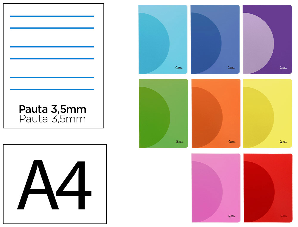 Libreta liderpapel 360 tapa de plastico a4 48 hojas 90gr pauta 4ª 3,5mm con margen colores surtidos