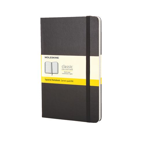 Moleskine es el heredero del legendario cuaderno utilizado en los últimos dos siglos por artistas y pensadores, como Vincent Van Gogh, Pablo Picasso y Ernest Hermingway. Especial y pequeño cuaderno negro de singulares esquinas redondeadas. Cierre elástico y bolsillo interior expandible de cartón y tela. Fabricadas en papel libre de cloro. Con punto de página. Libreta Moleskine con tapa rígida. Medida 13 x 21 cm. Color hoja marfil. Cuadrícula 5 x 5. 240 páginas