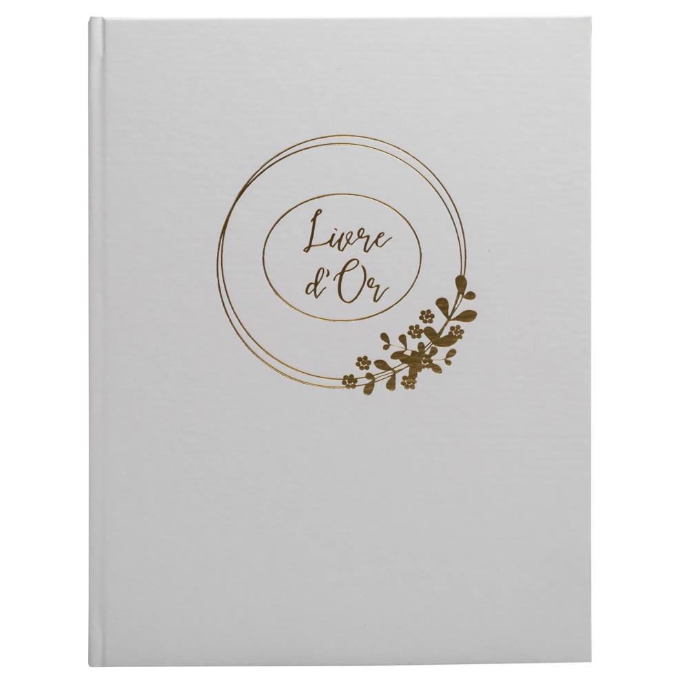 El libro de visitas vertical de 27x22 cm contiene 100 páginas con bordes dorados. Este producto está 100% diseñado y fabricado en nuestro sitio ubicado en París.
