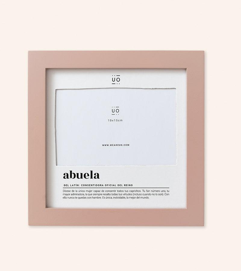 Marco de madera color rosa para fotos de 15x10 cm con la definición de “Abuela” escrita en el passepartout. Tu abuela es esa persona consentidora, experta en hacer las mejores tortillas de patatas y con grandes dosis de nietitis agua. Este marco es perfecto para recordar vuestra foto favorita junt@s.