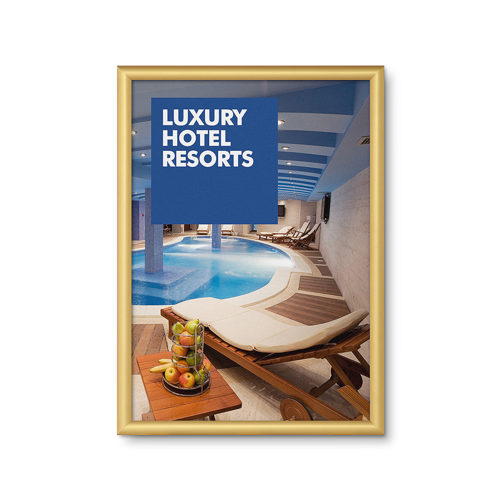 Estilo minimalista con un perfil de poca profundidad. Perfecto para montaje fijo en la pared. Los perfiles cuentan con esquinas en inglete y los marcos vienen en empaques individuales. Es una opción ideal para gráficos de tamaño reducido, desde DIN A5 hasta DIN A1.