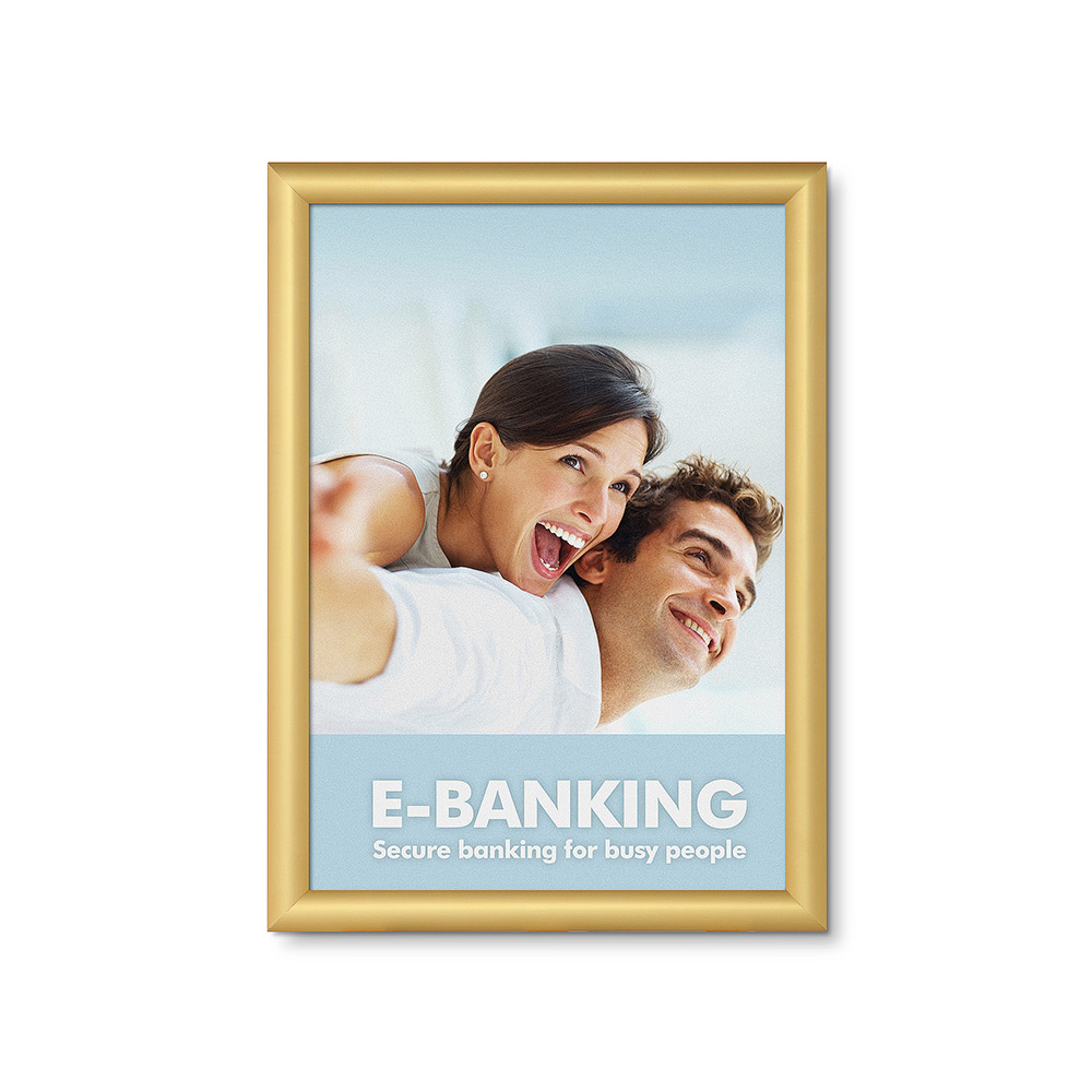 Estilo minimalista con un diseño de perfil delgado. Perfecto para montar de manera fija en la pared. Los perfiles presentan esquinas en inglete, y cada marco viene en su caja individual. Es una excelente opción para gráficos de tamaños reducidos, desde DIN A5 hasta DIN A1.