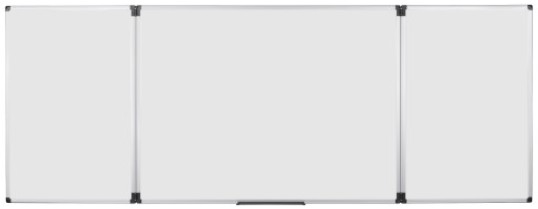 Gracias a su diseño tríptico, esta pizarra cuenta con cinco superficies de escritura en total, optimizando el espacio al máximo. Cuando está cerrada, mide 1200 x 1800 mm, y al desplegarse, ofrece una superficie amplia de 1200 x 3600 mm. Esta característica permite triplicar el área de trabajo, facilitando la organización de ideas, esquemas y cualquier contenido visual.