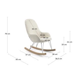 Estructura de metal acabado pintado blanco con patines de madera maciza chapados en fresno.