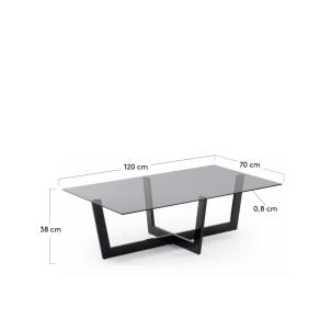 Mesa de centro Plam cristal negro y estructura de acero acabado negro 120 x 70 cm