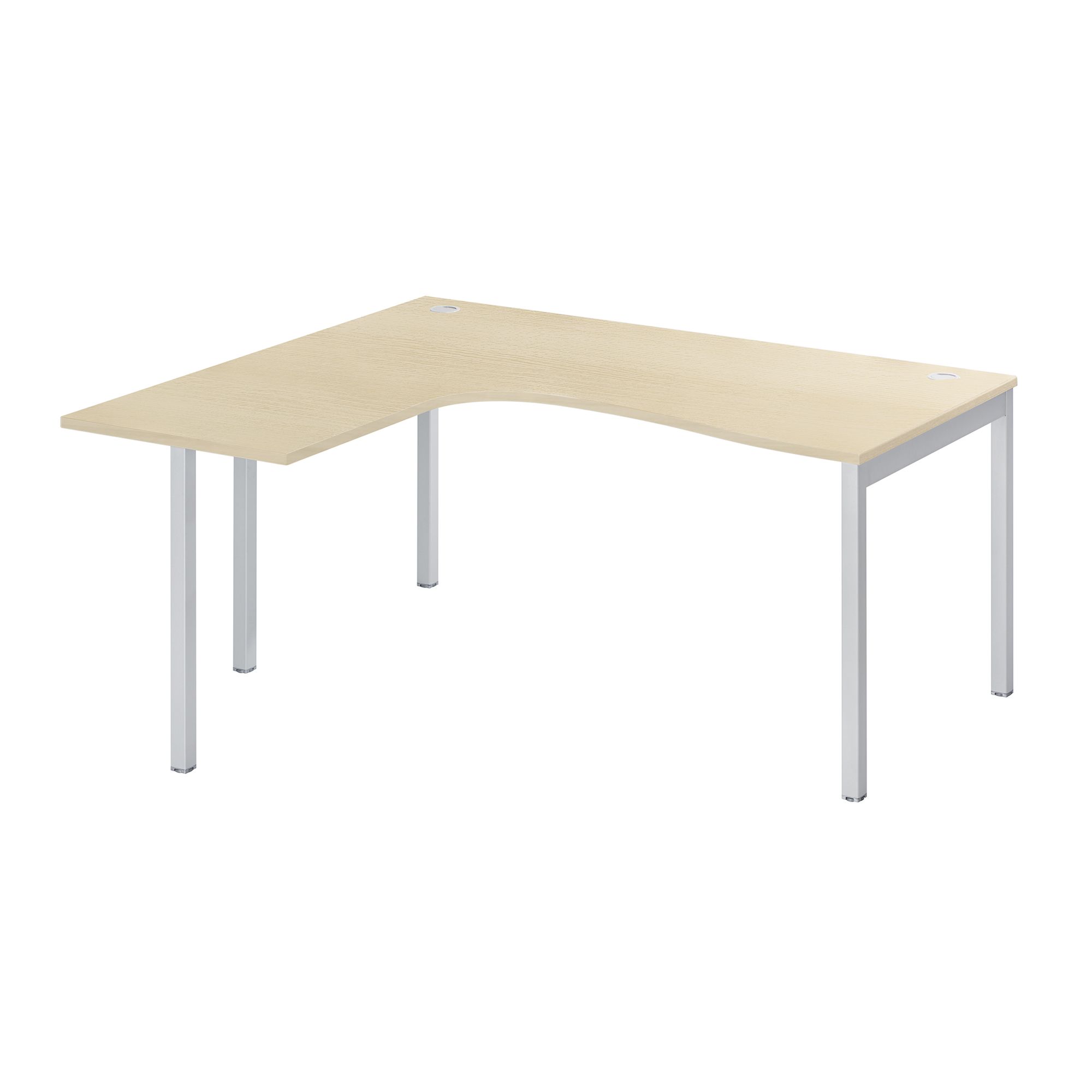 Funcional, este mobiliario cuenta con 2 pasacables de 50 mm de diámetro debajo del tablero y tacos para ajustar la altura. La esquina a la derecha o a la izquierda aumenta el espacio de trabajo.