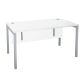 Tablero de paneles de partículas con revestimiento melaminado antirrayaduras y antirreflejos grosor 25 mm. Pasacables en el tablero Ø 50 mm. Cantos rectos ABS antichoque grosor 2 mm. Patas metálicas en forma de arco acabado aluminio sección cuadrada 40 x 40 mm con calzos regulables en altura en 15 mm. Panel de fondo opcional. Medidas: An. 160 x Fon. 80 x Alt. 73 cm.