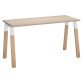 Mesa de oficina Ecla con diseño de inspiración escandinava. Patas bimateria (metal y madera maciza). Está fabricada con un tablero robusto de paneles de partículas de grosor 25 mm. Con revestimiento melaminado tratado antirreflejo. Cantos rectos ABS de 2 mm de grosor. Con barra de refuerzo metálica bajo el tablero para una mejor resistencia y tacos de regulación en las patas para los desniveles del suelo.