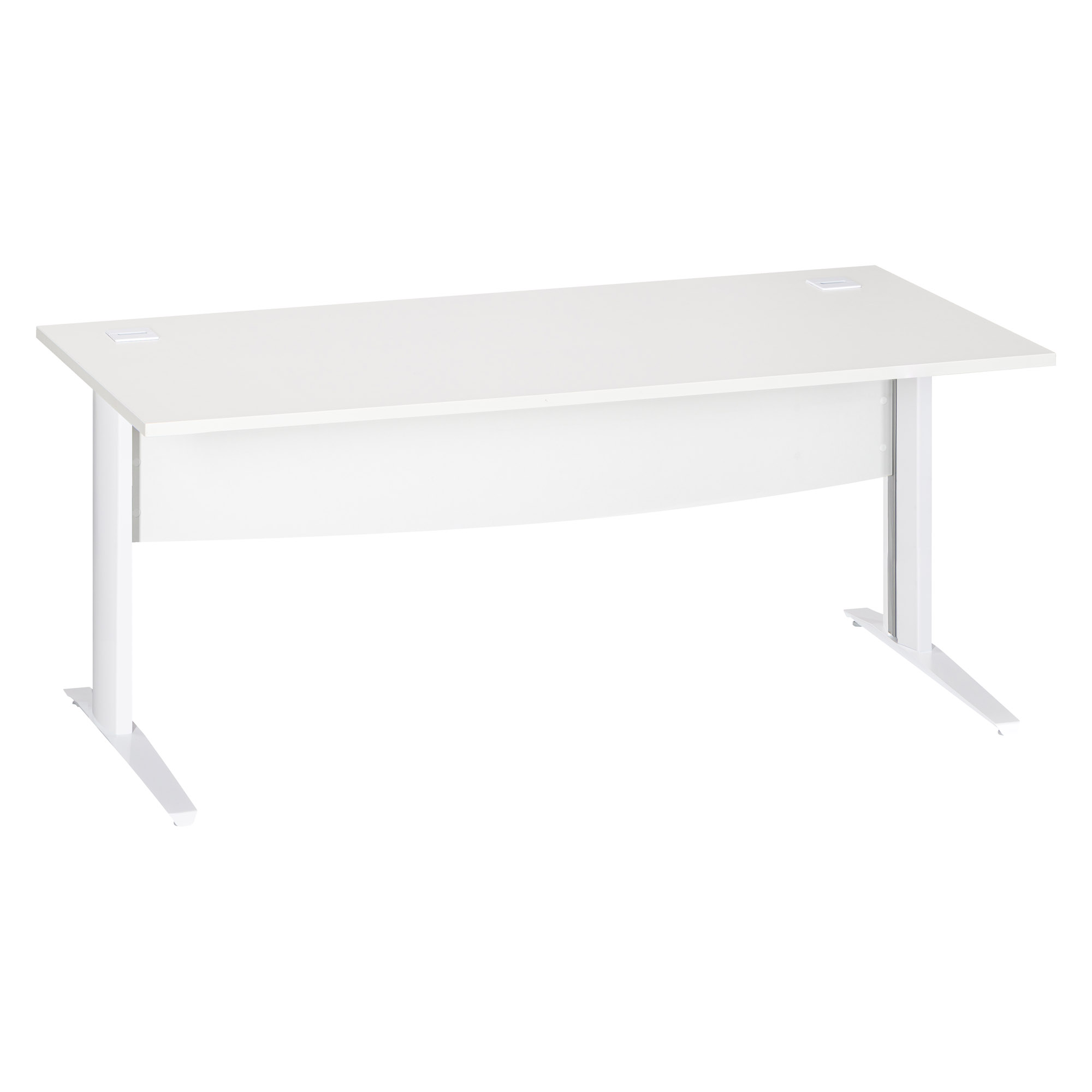 ¿Buscas una mesa de oficina que combine robustez y estética? Opta por la mesa Excellens, pata en L, con ala derecha o izquierda. Este modelo tiene un tablero de partículas melaminadas con revestimiento resistente a las rayaduras y tratamiento antirreflejos. Cantos rectos de ABS resistente a los golpes. Para asegurar su estabilidad, incorpora patas metálicas en forma de "L" más un refuerzo metálico de 6 cm de diámetro. Incluye pasacables integrados en el tablero con paso vertical en las patas. Con panel de fondo.