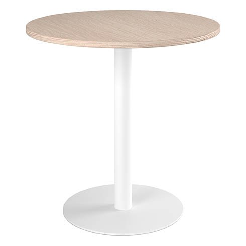 Descripción detalladaEstructura: tablero de paneles de partículas de 25 mm de grosor, revestidos con melamina antirreflejo.Cantos rectos ABS antichoque con un grosor de 3 mm.Pata metálica lacada epoxi. Diámetro 80 cm.