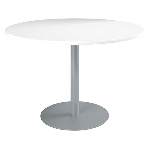 Descripción detalladaTableros de paneles de partículas de melamina de alta densidad, 25 mm de grosor.Cantos de PVC antichoque de 3 mm.Base circular con una columna metal lacado epoxi Ø 76 mm, base Ø 60 mm alt 76 cm.