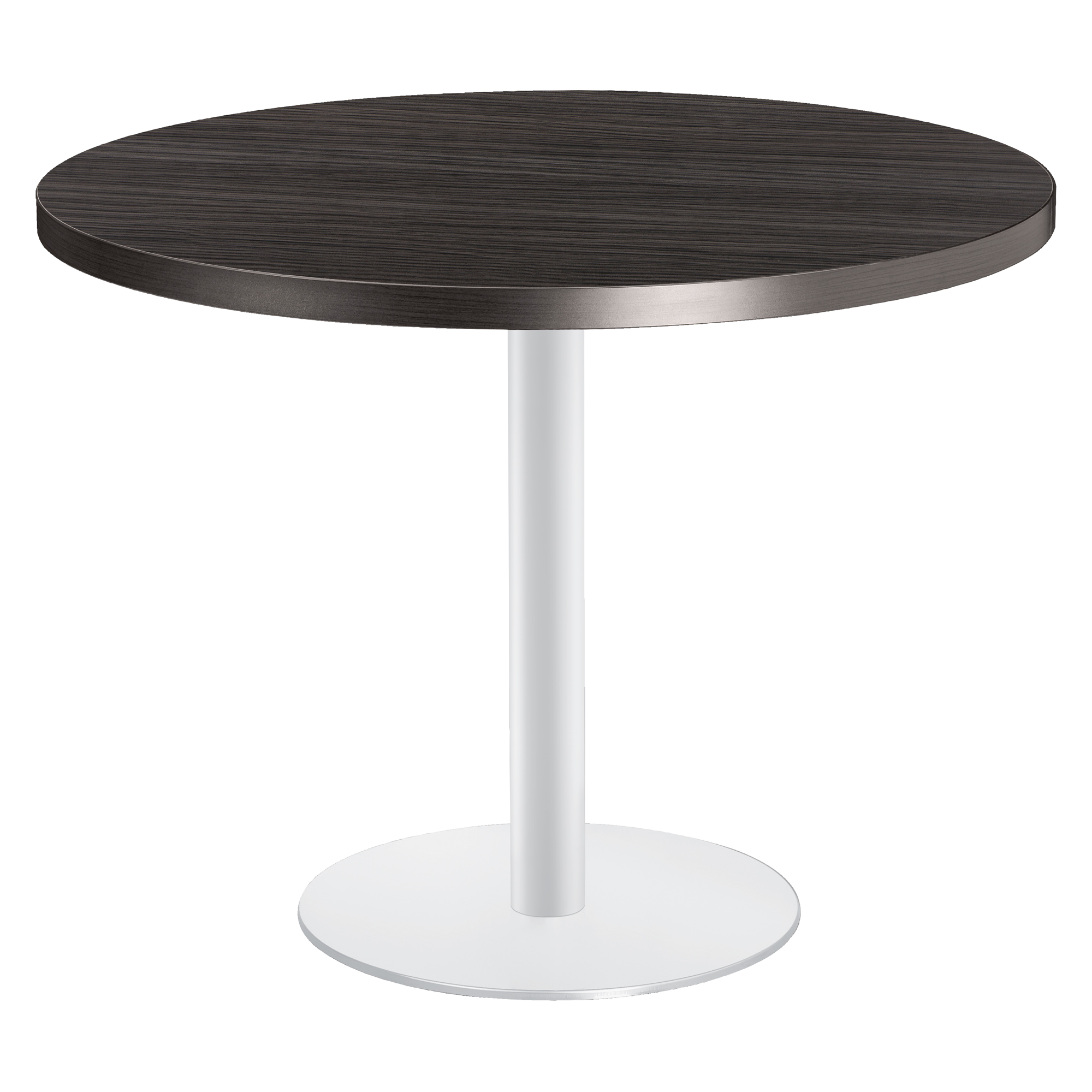 Mesa redonda fabricada en paneles de partículas melaminadas 38 mm con cantos ABS antichoque de 2 mm.