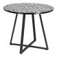 mueble de exterior minimalista pero con mucha personalidad, para combinar en cualquier tipo de espacio. Ofrece capacidad para hasta 4 comensales, con un tablero de 90 cm de diámetro forrado de baldosas blancas y negras sobre un armazón de acero galvanizado lacado en color negro. Resistente al óxido, la corrosión y los rayos solares, es la pieza ideal para usar en el jardín, terraza o patio.