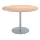 Adopta esta mesa de reunión Ecla con diseño de inspiración nórdica. Fabricada con paneles de partículas y un revestimiento melaminado tratado antireflejo, su tablero tiene un grosor de 25 mm y cantos rectos en ABS de 2 mm de grosor. Su pata es circular y metálica para una mejor estabilidad. Medidas: Alt 75 x Ø 120 cm.