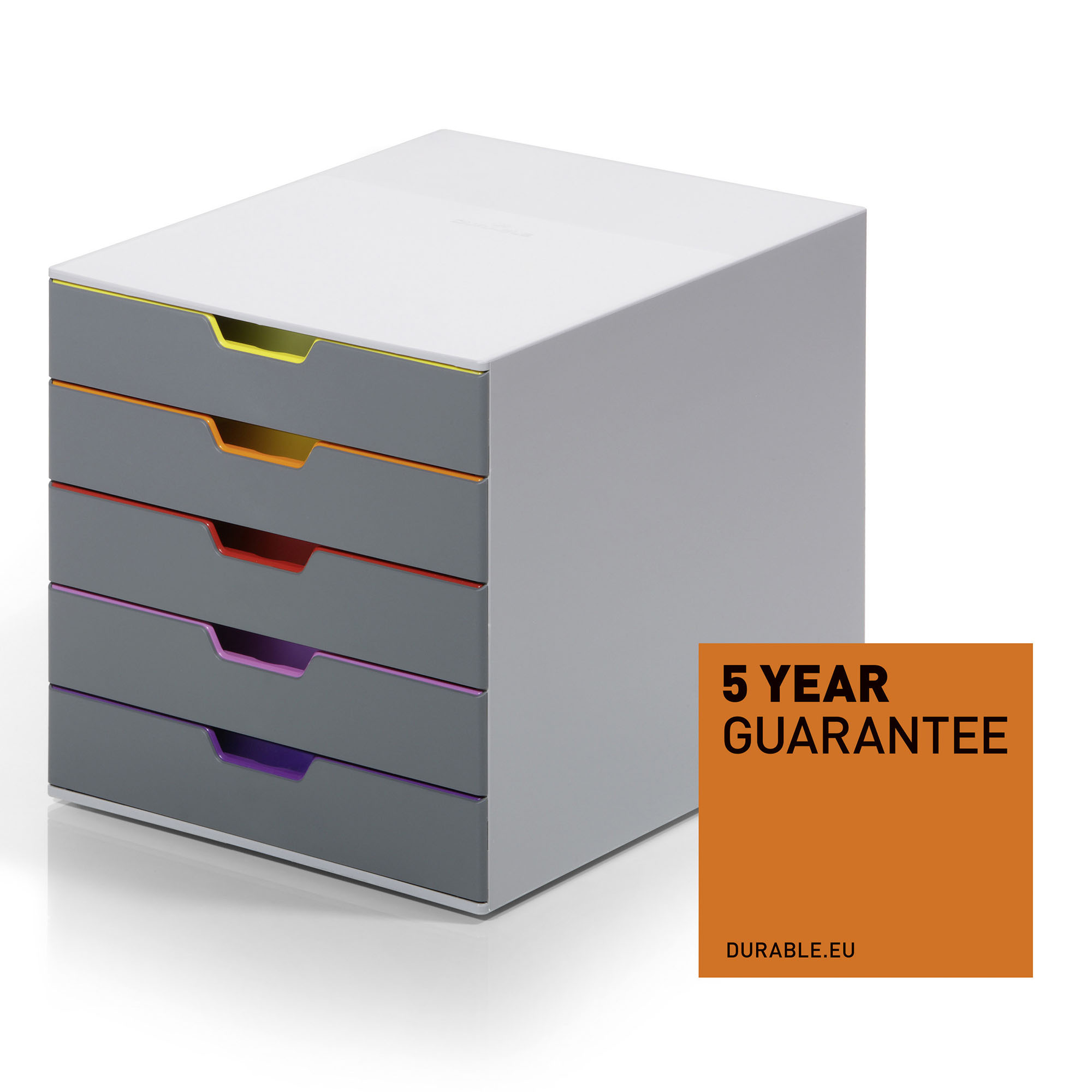 Muy funcional, el módulo de archivo de 10 cajones Durable VARICOLOR® es un gran aliado para clasificar y organizar tus documentos hasta en formato A4.