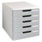 Módulos de clasificación apilables y ajustables mediante clips, para crear verdaderas paredes de clasificación. Para documentos hasta formato 24 x 32 cm. 4 alturas últiles de cajón: de 2,6 cm a 11 cm. Cajones intercambiables suministrados con portaetiquetas y etiquetas. Cuerpo gris claro con esquinas redondeadas. Fabricado en Poliestireno. Medidas de un módulo: Alt. 32,5 x An. 29 x Fon. 35 cm.
