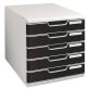 Módulos de clasificación apilables y ajustables mediante clips, para crear verdaderas paredes de clasificación. Para documentos hasta formato 24 x 32 cm. 4 alturas últiles de cajón: de 2,6 cm a 11 cm. Cajones intercambiables suministrados con portaetiquetas y etiquetas. Cuerpo gris claro con esquinas redondeadas. Fabricado en Poliestireno. Medidas de un módulo: Alt. 32,5 x An. 29 x Fon. 35 cm.
