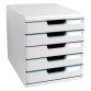 Módulos de clasificación apilables y ajustables mediante clips, para crear verdaderas paredes de clasificación. Para documentos hasta formato 24 x 32 cm. 4 alturas últiles de cajón: de 2,6 cm a 11 cm. Cajones intercambiables suministrados con portaetiquetas y etiquetas. Cuerpo gris claro con esquinas redondeadas. Fabricado en Poliestireno. Medidas de un módulo: Alt. 32,5 x An. 29 x Fon. 35 cm.