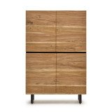 - 2 puertas correderas de estilo persiana hechas de listones de madera para ocultar o mostrar el interior del mueble.