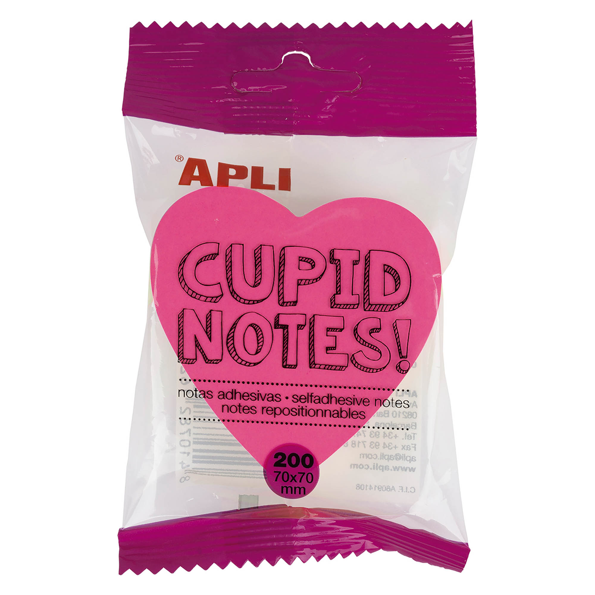 Descripción detalladaCubo con 200 notas adhesivas en forma de corazón y con colores surtidos: naranja, verde, amarillo y rosa. Medidas 70 x 70 mm.