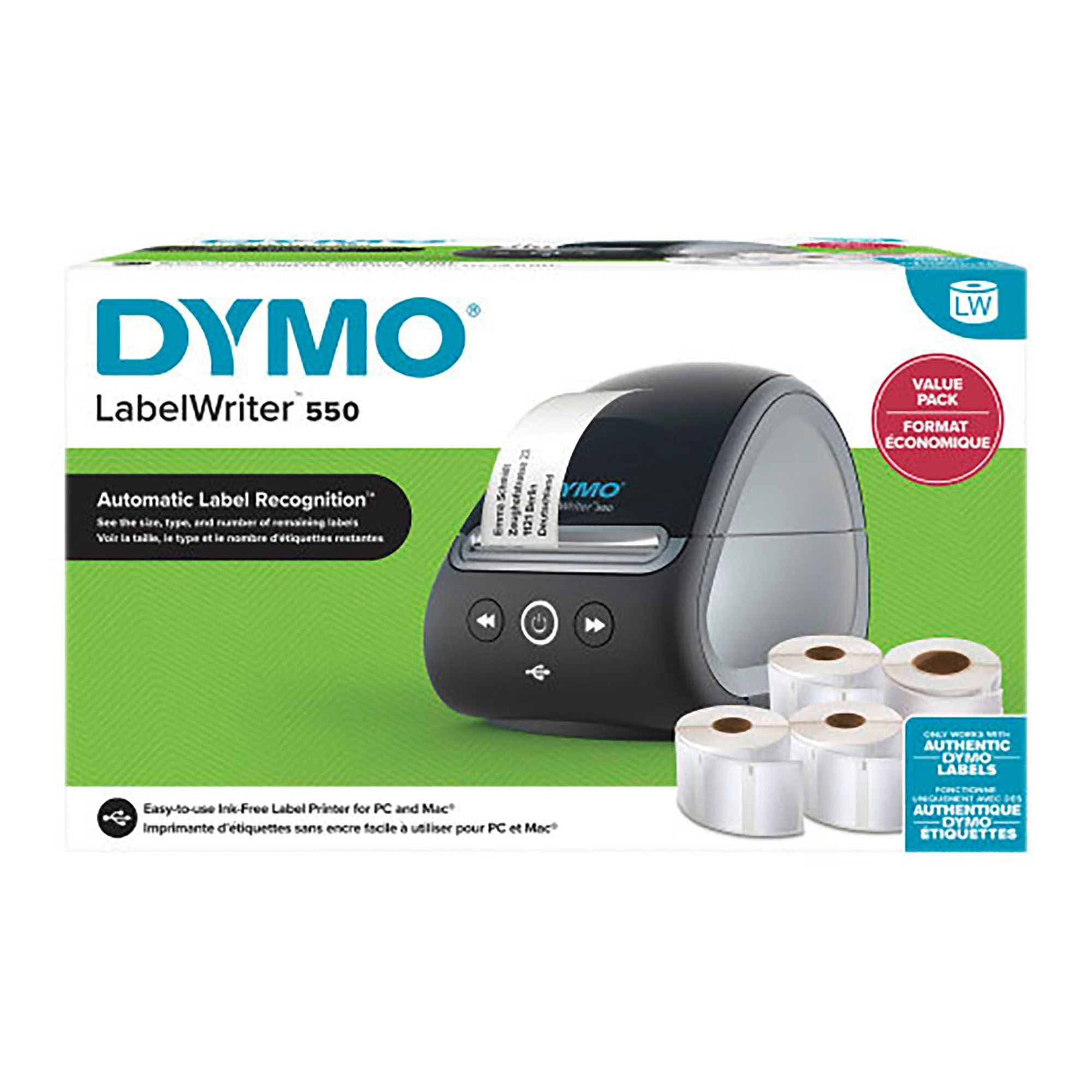 La impresora LabelWriter™ 550 proporciona una solución eficiente y rentable para todas tus aplicaciones de impresión de etiquetas para correo, archivo, gestión de visitantes y otras necesidades de etiquetado.