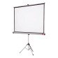 Pantalla de trípode flexible para proyector de alta calidad. Superficie blanca mate brillante con borde negro, la pantalla se puede replegar con facilidad en su caja para protegerla de daños. Un brazo suspendido inclina la pantalla hacia el público. Disponible en una amplia gama de tamaños de hasta 2 m de anchura. Formato 4:3.