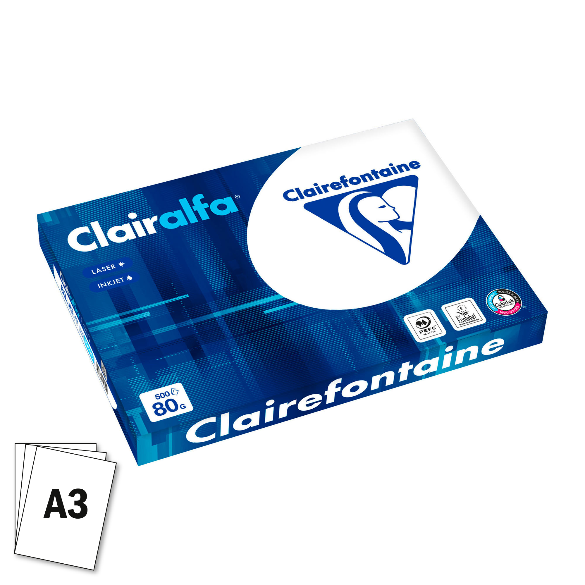 Descripción detalladaPapel Clairefontaine Clairalfa A3 80 g.Papel de alta calidad ideal para documentos de comunicación, folletos y dossieres, gracias a su gran blancura.CIE 170. Paquete de 500 hojas.Certificado PEFC. ISO 9706.