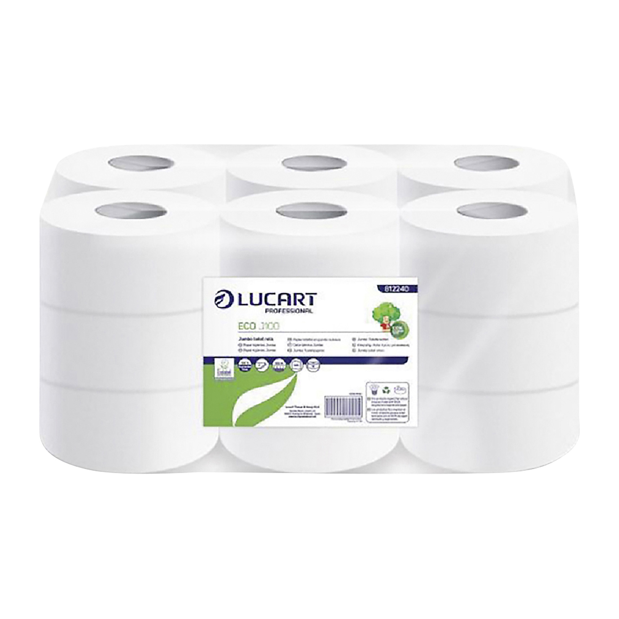 Papel higiénico rollo Jumbo Lucart ECO J100 doble capa 100m - pack de 18 rollos