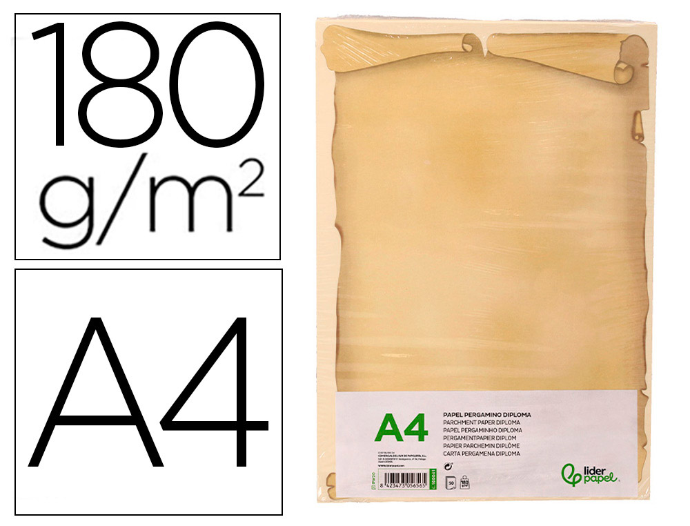 Papel pergamino liderpapel din a4 diploma 180 gr paquete de 50 hojas