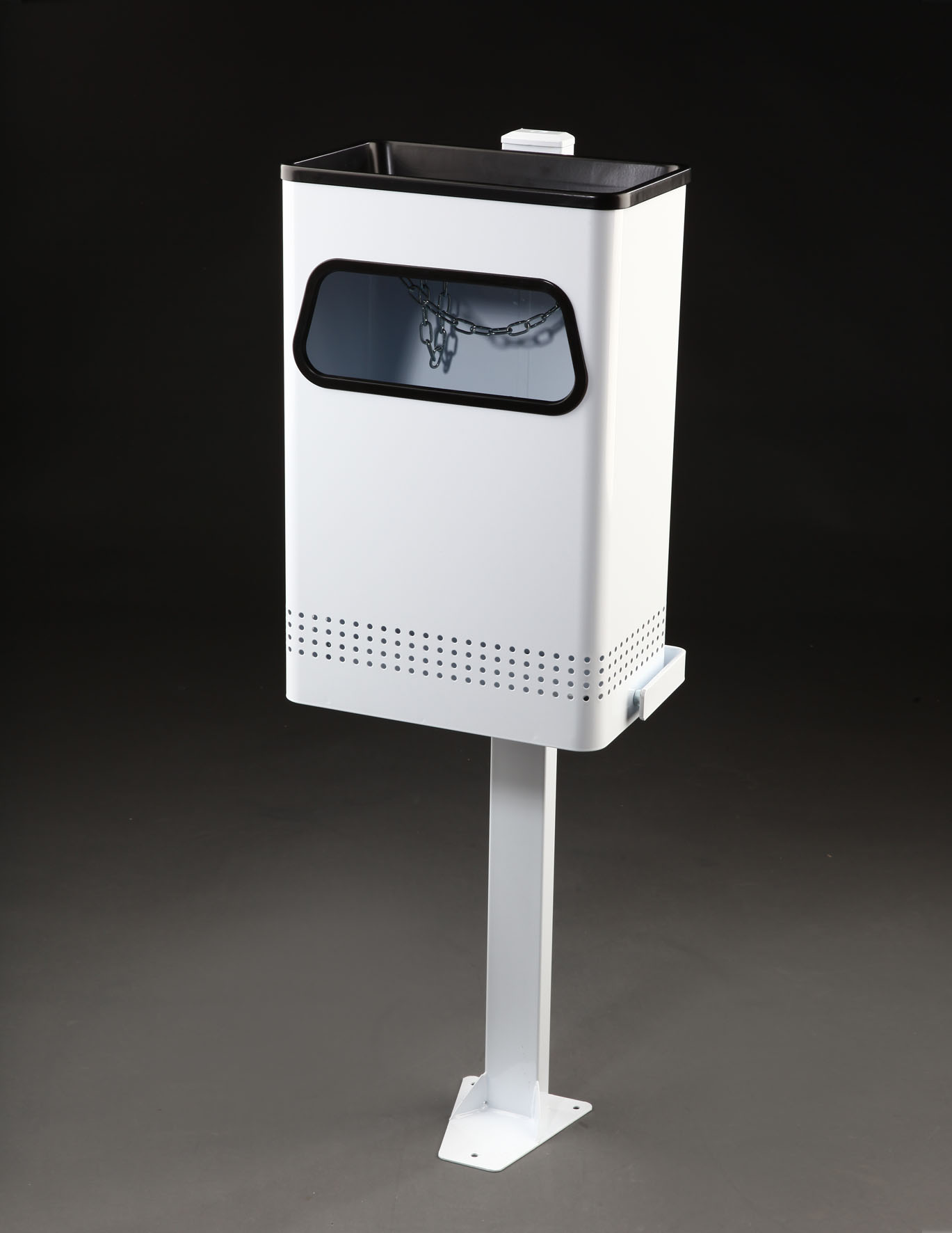 Papeleras exterior. Cenicero papelera rectangular con boca frontal y soporte a suelo de chapa pintada Fabricada en chapa electrocincada de 0,8 mm de espesor