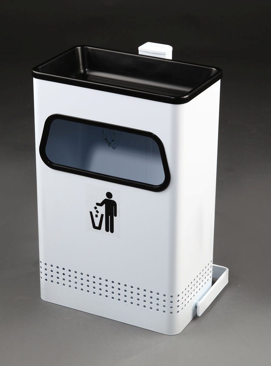 Papeleras exterior. Cenicero papelera rectangular con boca frontal y soporte a pared de chapa pintada Fabricada en chapa electrocincada de 0,8 mm de espesor