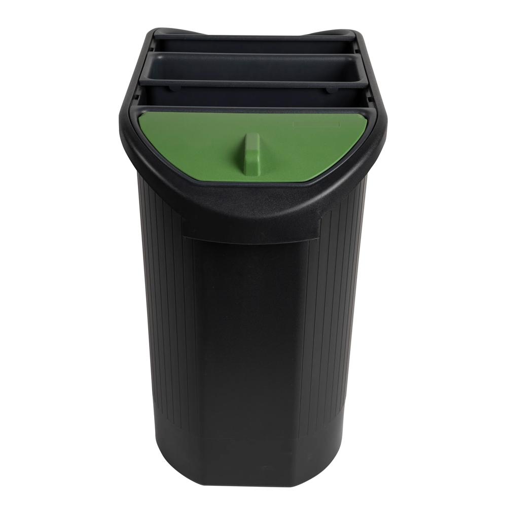 Este cubo tiene capacidad para 26 litros. Equipado con 3 insertos para permitir la clasificación de los residuos. Uno de los insertos está provisto de tapa, lo que permite aislar los residuos orgánicos olorosos en un compartimento estanco. El producto tiene una garantía de 25 años. Respetuoso con el medio ambiente, este cesto de basura está fabricado con plástico reciclado procedente de la basura doméstica. Por lo tanto, está certificada Blue Angel.