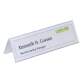 Descripción detalladaLámina dura. La forma de tejado posibilita la lectura de ambas caras. Con etiqueta en blanco con marco decorativo. Medidas: 61 x 210 mm. Paquete de 25 uds.