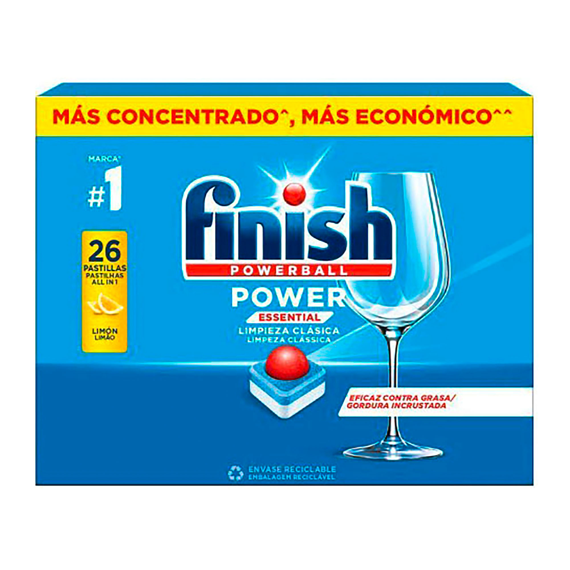 Finish Power Essential, limpieza para tu vajilla. Nuestra Powerball potencia la pastilla para una limpieza diaria en cada lavado.
