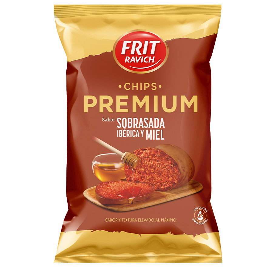 Patatas fritas con sabor a sobrasada ibérica y miel. Con azúcar y edulcorantes.