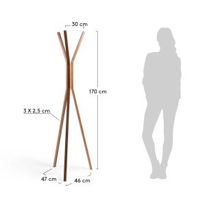 Perchero de madera maciza y chapa de caucho con acabado nogal.