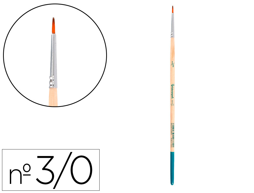 Pincel para pintura acrílica y acuarela Liderpapel nº 000 punta redonda depelo sintético certificado FSC. Diseñados para su uso con pintura acrílico a, acuarela y gouache/témpera, están hechos para ser fuertes, resistentes y flexibles. La mezcla de filamentos sintéticos proporciona una excelente respuesta y control para la aplicación más gruesa del color, manteniendo la forma sin importar la cantidad de agua utilizada. Los pinceles de punta redonda están diseñados para ofrecer una excelente precisión en aplicaciones lineales delicadas. Gracias a su forma, son ideales para detalles finos y trabajos que requieren un control preciso del trazo. La punta redonda permite una aplicación suave y uniforme del color. Disponibles en 19 tamaños diferentes lo que los hace perfectos para técnicas que requieren líneas definidas y detalles minuciosos.