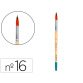 Pincel para pintura acrílica y acuarela Liderpapel nº 16 punta redonda de pelo sintético certificado FSC. Diseñados para su uso con pintura acrílica, acuarela y gouache/témpera, están hechos para ser fuertes, resistentes y flexibles. La mezcla de filamentos sintéticos proporciona una excelente respuesta y control para la aplicación más gruesa del color, manteniendo la forma sin importar la cantidad de agua utilizada. Los pinceles de punta redonda están diseñados para ofrecer una excelente precisión en aplicaciones lineales delicadas. Gracias a su forma, son ideales para detalles finos y trabajos que requieren un control preciso del trazo. La punta redonda permite una aplicación suave y uniforme del color. Disponibles en 19 tamaños diferentes lo que los hace perfectos para técnicas que requieren líneas definidas y detalles minuciosos.