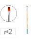 Pincel para pintura acrílica y acuarela Liderpapel nº 2 punta plana de pelo sintético certificado FSC. Diseñados para su uso con pintura acrílica, acuarela y gouache/témpera, están hechos para ser fuertes, resistentes y flexibles. La mezcla de filamentos sintéticos proporciona una excelente respuesta y control para la aplicación más gruesa del color, manteniendo la forma sin importar la cantidad de agua utilizada. La forma plana de estos pinceles es perfecta para crear trazos amplios y definidos. Disponibles en 19 tamaños diferentes, proporcionan una amplia gama de grosores de línea para adaptarse a tus necesidades artísticas.