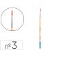 Pincel para pintura acrílica y acuarela Liderpapel nº 3 punta redonda de pelo sintético certificado FSC. Diseñados para su uso con pintura acrílica,acuarela y gouache/témpera, están hechos para ser fuertes, resistentes y flexibles. La mezcla de filamentos sintéticos proporciona una excelente respuesta y control para la aplicación más gruesa del color, manteniendo la forma sin importar la cantidad de agua utilizada. Los pinceles de punta redonda están diseñados para ofrecer una excelente precisión en aplicaciones lineales delicadas. Gracias a su forma, son ideales para detalles finos y trabajos que requieren un control preciso del trazo. La punta redonda permite una aplicación suave y uniforme del color. Disponibles en 19 tamaños os diferentes lo que los hace perfectos para técnicas que requieren líneas definidas y detalles minuciosos.