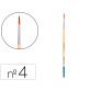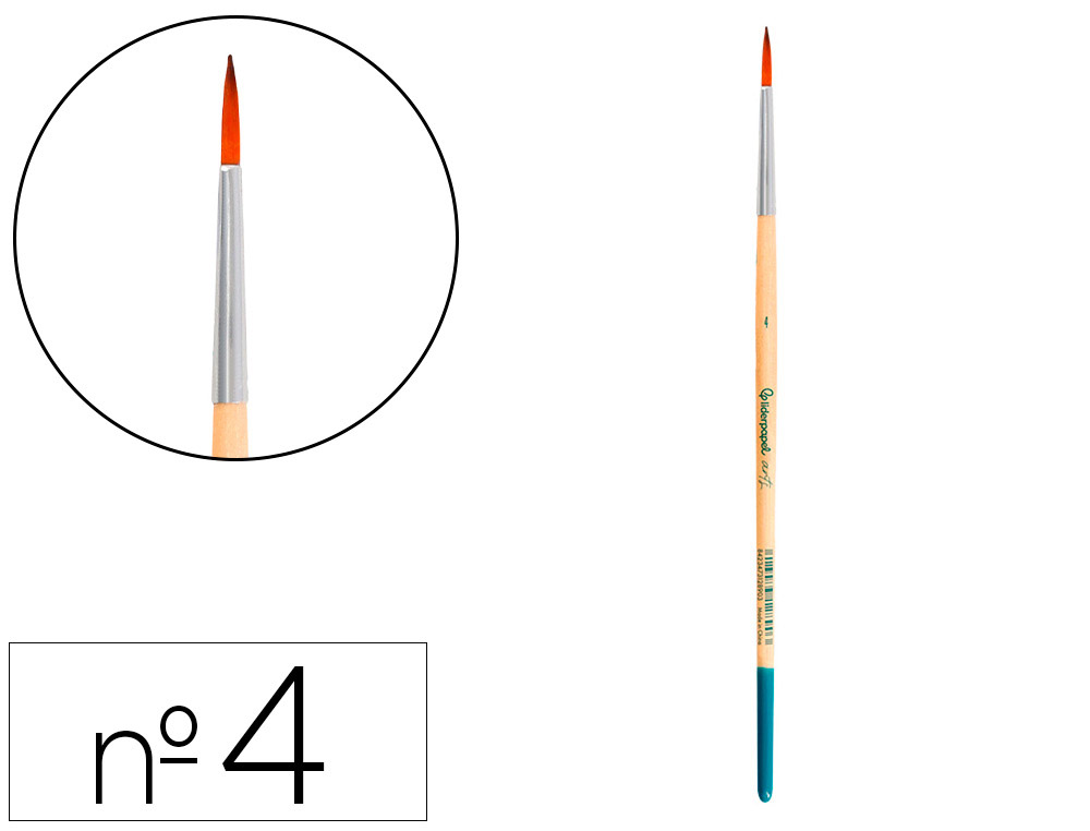 Pincel para pintura acrílica y acuarela Liderpapel nº 4 punta redonda de pelo sintético certificado FSC. Diseñados para su uso con pintura acrílica,acuarela y gouache/témpera, están hechos para ser fuertes, resistentes y flexibles. La mezcla de filamentos sintéticos proporciona una excelente respuesta y control para la aplicación más gruesa del color, manteniendo la forma sin importar la cantidad de agua utilizada. Los pinceles de punta redonda están diseñados para ofrecer una excelente precisión en aplicaciones lineales delicadas. Gracias a su forma, son ideales para detalles finos y trabajos que requieren un control preciso del trazo. La punta redonda permite una aplicación suave y uniforme del color. Disponibles en 19 tamaños os diferentes lo que los hace perfectos para técnicas que requieren líneas definidas y detalles minuciosos.
