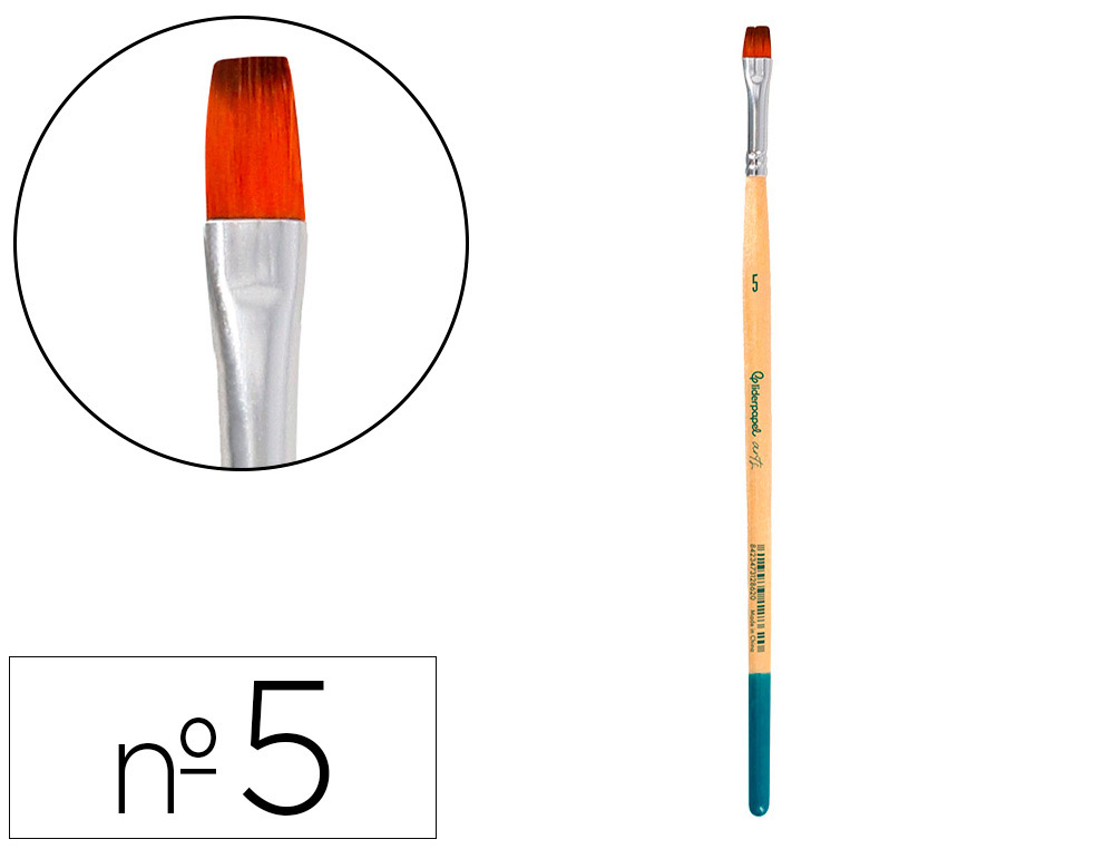 Pincel para pintura acrílica y acuarela Liderpapel nº 5 punta plana de pelo sintético certificado FSC. Diseñados para su uso con pintura acrílica, acuarela y gouache/témpera, están hechos para ser fuertes, resistentes y flexibles. La mezcla de filamentos sintéticos proporciona una excelente respuesta y control para la aplicación más gruesa del color, manteniendo la forma sin importar la cantidad de agua utilizada. La forma plana de estos pinceles es perfecta para crear trazos amplios y definidos. Disponibles en 19 tamaños diferentes, proporcionan una amplia gama de grosores de línea para adaptarse a tus necesidades artísticas.