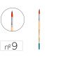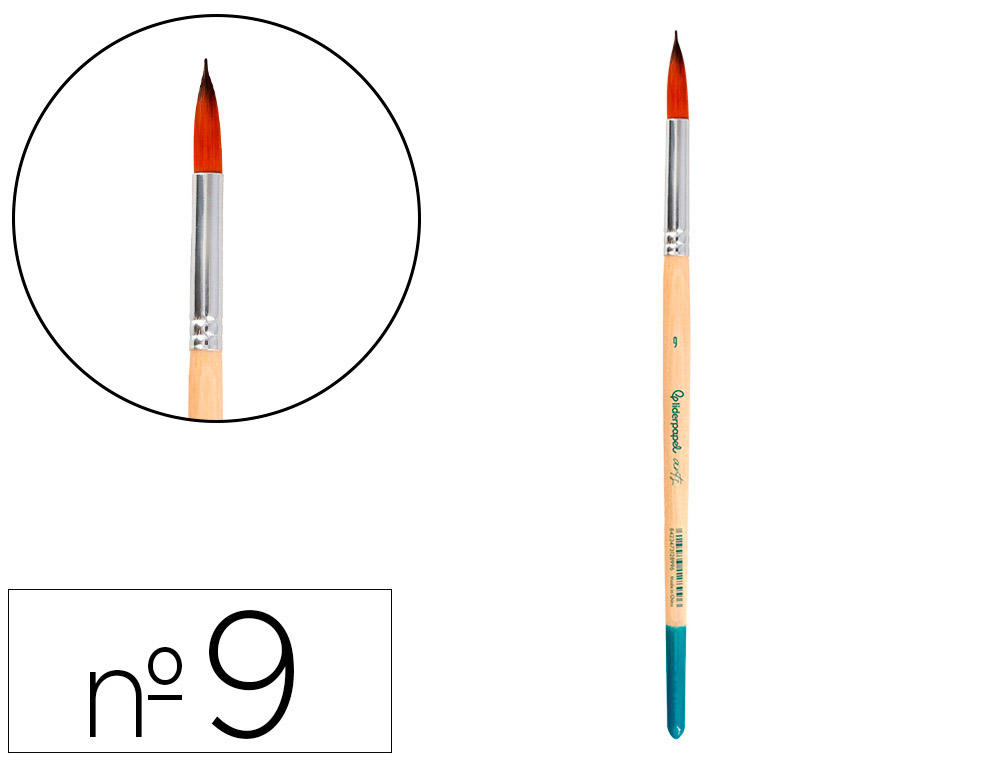 Pincel para pintura acrílica y acuarela Liderpapel nº 9 punta redonda de pelo sintético certificado FSC. Diseñados para su uso con pintura acrílica,acuarela y gouache/témpera, están hechos para ser fuertes, resistentes y flexibles. La mezcla de filamentos sintéticos proporciona una excelente respuesta y control para la aplicación más gruesa del color, manteniendo la forma sin importar la cantidad de agua utilizada. Los pinceles de punta redonda están diseñados para ofrecer una excelente precisión en aplicaciones lineales delicadas. Gracias a su forma, son ideales para detalles finos y trabajos que requieren un control preciso del trazo. La punta redonda permite una aplicación suave y uniforme del color. Disponibles en 19 tamaños os diferentes lo que los hace perfectos para técnicas que requieren líneas definidas y detalles minuciosos.