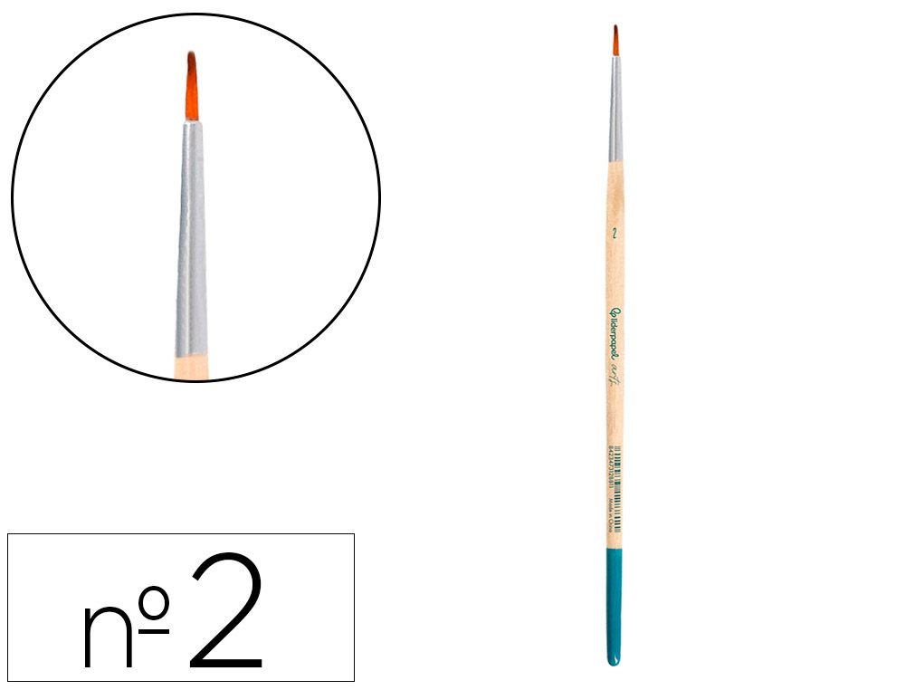 Pincel para pintura acrílica y acuarela Liderpapel nº 2 punta redonda de pelo sintético certificado FSC. Diseñados para su uso con pintura acrílica,acuarela y gouache/témpera, están hechos para ser fuertes, resistentes y flexibles. La mezcla de filamentos sintéticos proporciona una excelente respuesta y control para la aplicación más gruesa del color, manteniendo la forma sin importar la cantidad de agua utilizada. Los pinceles de punta redonda están diseñados para ofrecer una excelente precisión en aplicaciones lineales delicadas. Gracias a su forma, son ideales para detalles finos y trabajos que requieren un control preciso del trazo. La punta redonda permite una aplicación suave y uniforme del color. Disponibles en 19 tamaños os diferentes lo que los hace perfectos para técnicas que requieren líneas definidas y detalles minuciosos.