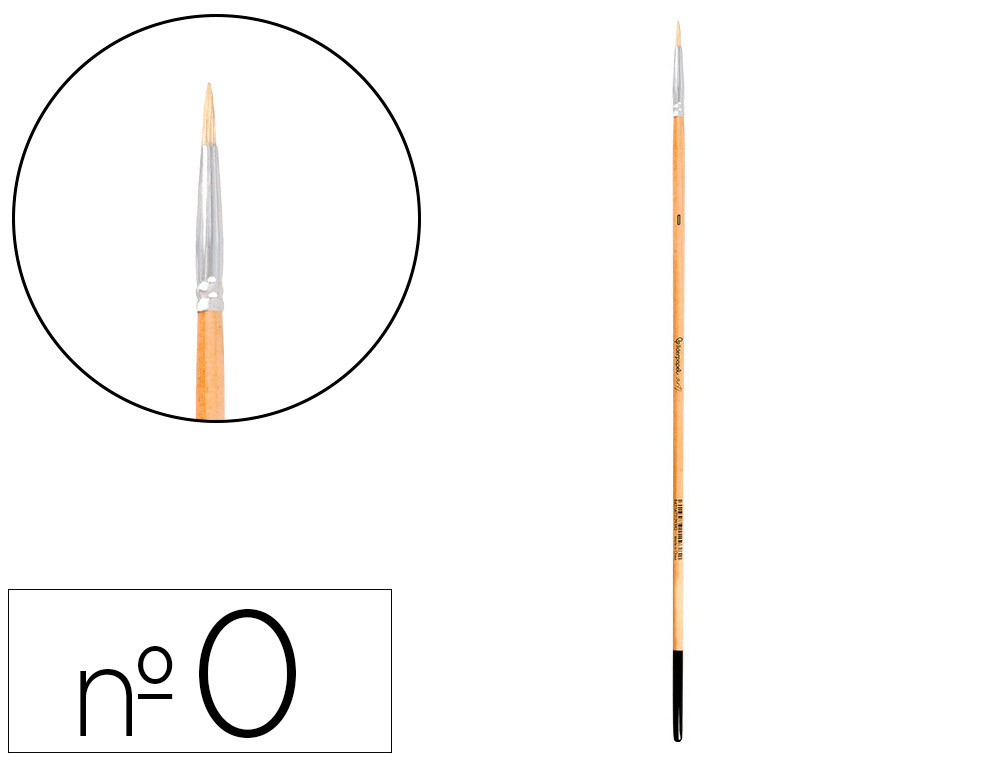 Pincel para pintura al óleo y acrílica Liderpapel nº 0 punta redonda de pelo de cerda certificado FSC. Diseñados para su uso con pintura al óleo y acrílica. Los pinceles de pelo de cerda están hechos de cerdas naturales, generalmente de cerdo, que son rígidas y duraderas. Son ideales para técnicas que requieren una aplicación de pintura más vigorosa y texturizada. Estos pinceles son excelentes para trabajar con pinturas más espesas, como óleos y acrílicos, ya que pueden sostener y distribuir grandes cantidades de pintura de manera uniforme. Las cerdas rígidas permiten crear efectos de textura y pinceladas visibles, lo que es perfecto para estilos de pintura expresivos y dinámicos. Los pinceles de punta redonda tienen cerdas que fo forman una punta afilada, lo que los hace ideales para detalles finos y líneas precisas. Son muy versátiles y se pueden usar para una variedad de técnicas, desde trazos delicados hasta rellenos más amplios cuando se precise pincel.