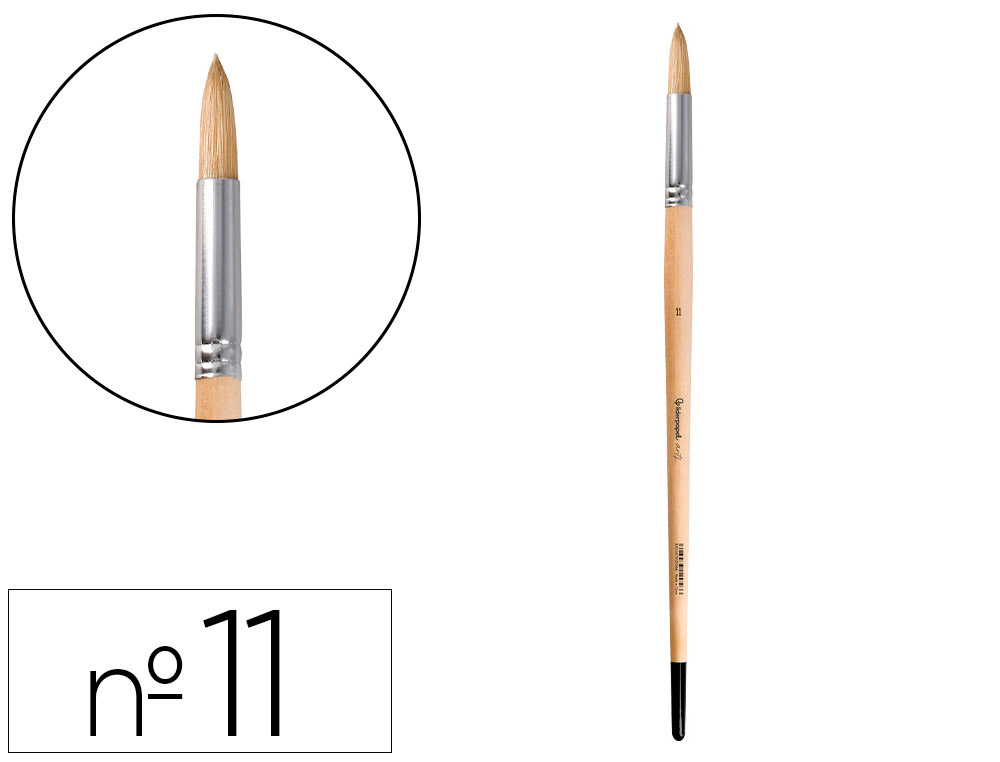 Pincel para pintura al óleo y acrílica Liderpapel nº 11 punta redonda de pelo de cerda certificado FSC. Diseñados para su uso con pintura al óleo y acrílica. Los pinceles de pelo de cerda están hechos de cerdas naturales, generalmente de cerdo, que son rígidas y duraderas. Son ideales para técnicas que requieren una aplicación de pintura más vigorosa y texturizada. Estos pinceles son excelentes para trabajar con pinturas más espesas, como óleos y acrílicos, ya que pueden sostener y distribuir grandes cantidades de pintura de manera uniforme. Las cerdas rígidas permiten crear efectos de textura y pinceladas visibles, lo que es perfecto para estilos de pintura expresivos y dinámicos. Los pinceles de punta redonda tienen cerdas que fe forman una punta afilada, lo que los hace ideales para detalles finos y líneas precisas. Son muy versátiles y se pueden usar para una variedad de técnicas, desde trazos delicados hasta rellenos más amplios.
