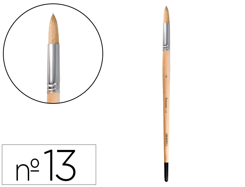 Pincel para pintura al óleo y acrílica Liderpapel nº 13 punta redonda de pelo de cerda certificado FSC. Diseñados para su uso con pintura al óleo y acrílica. Los pinceles de pelo de cerda están hechos de cerdas naturales, generalmente de cerdo, que son rígidas y duraderas. Son ideales para técnicas que requieren una aplicación de pintura más vigorosa y texturizada. Estos pinceles son excelentes para trabajar con pinturas más espesas, como óleos y acrílicos, ya que pueden sostener y distribuir grandes cantidades de pintura de manera uniforme. Las cerdas rígidas permiten crear efectos de textura y pinceladas visibles, lo que es perfecto para estilos de pintura expresivos y dinámicos. Los pinceles de punta redonda tienen cerdas que fe forman una punta afilada, lo que los hace ideales para detalles finos y líneas precisas.
