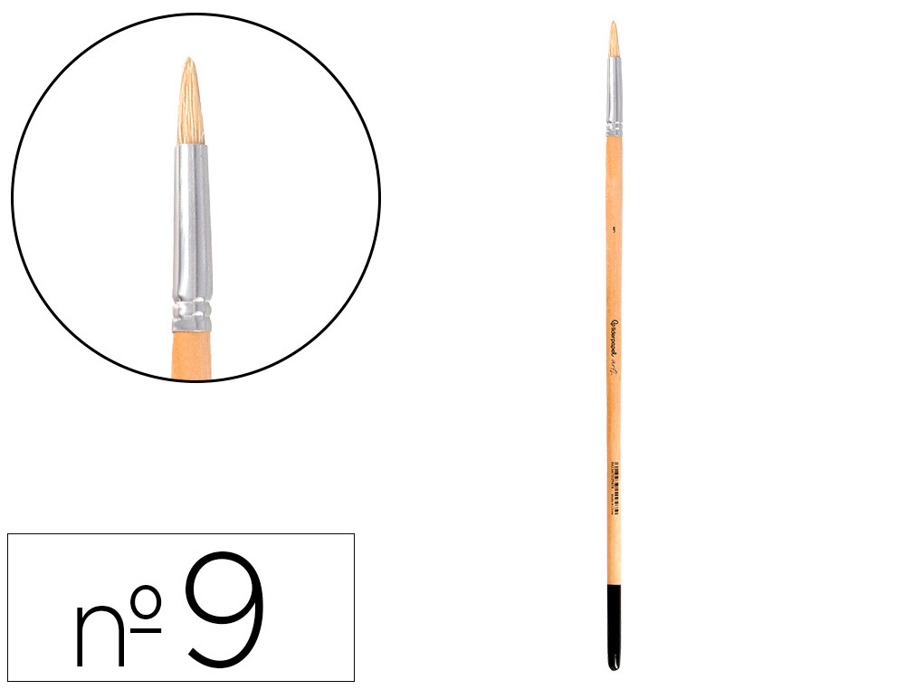 Pincel para pintura al óleo y acrílica Liderpapel nº 9 punta redonda de pelo de cerda certificado FSC. Diseñados para su uso con pintura al óleo y acrílica. Los pinceles de pelo de cerda están hechos de cerdas naturales que son rígidas y duraderas. Son ideales para técnicas que requieren una aplicación de pintura más vigorosa y texturizada. Estos pinceles son excelentes para trabajar con pinturas más espesas, como óleos y acrílicos, ya que pueden sostener y distribuir grandes cantidades de pintura de manera uniforme. Las cerdas rígidas permiten crear efectos de textura y pinceladas visibles, lo que es perfecto para estilos de pintura expresivos y dinámicos. Los pinceles de punta redonda tienen cerdas que forman una punta afilada, lo que los hace ideales para detalles finos y líneas precisas. Son muy versátiles y se pueden usar para una variedad de técnicas, desde trazos delicados hasta rellenos más amplios cuando se precisa pincel.