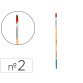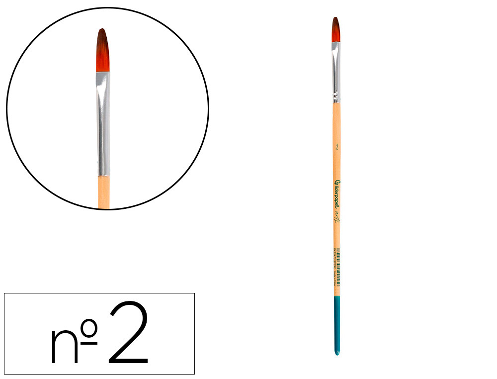 Pincel para pintura acrílica y acuarela Liderpapel nº 2 punta filbert / lengua de gato de pelo sintético certificado FSC. Diseñados para su uso con pintura acrílica, acuarela y gouache/témpera, están hechos para ser fuertes, resistentes y flexibles. La mezcla de filamentos sintéticos proporciona una excelente respuesta y control para la aplicación más gruesa del color, manteniendo la forma sin importar la cantidad de agua utilizada. Los pinceles de lengua de gato, también conocidos como pinceles filbert, combinan las características de los pinceles planos y redondos. Tienen una punta ovalada que permite tanto trazos amplios como detalles finos. Esta forma versátil es ideal para mezclar y suavizar bordes, así como para crear líneaseas precisas y áreas de color más amplias. Los pinceles de lengua de gato son especialmente útiles para técnicas que requieren una transición suave entre colores y para trabajar en áreas curvas o detalladas. Disponibles ens diferentes.