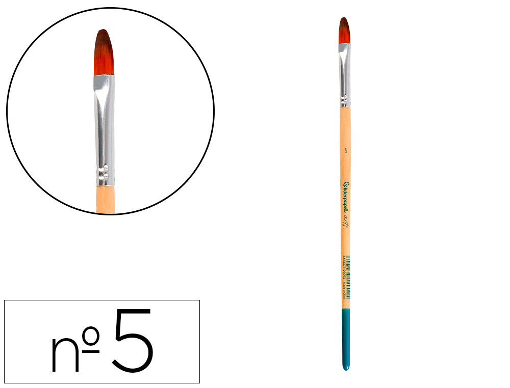 Pincel para pintura acrílica y acuarela Liderpapel nº 5 punta filbert / lengua de gato de pelo sintético certificado FSC. Diseñados para su uso con pintura acrílica, acuarela y gouache/témpera, están hechos para ser fuertes, resistentes y flexibles. La mezcla de filamentos sintéticos proporciona una excelente respuesta y control para la aplicación más gruesa del color, manteniendo la forma sin importar la cantidad de agua utilizada. Los pinceles de lengua de gato, también conocidos como pinceles filbert, combinan las características de los pinceles planos y redondos. Tienen una punta ovalada que permite tanto trazos amplios como detalles finos. Esta forma versátil es ideal para mezclar y suavizar bordes, así como para crear líneaseas precisas y áreas de color más amplias. Los pinceles de lengua de gato son especialmente útiles para técnicas que requieren una transición suave entre colores y para trabajar en áreas curvas o detalladas. Disponibles ens diferentes.